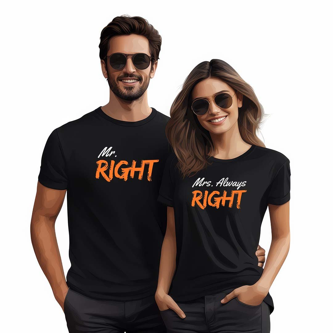 Mr & Mrs Right Premium Supima T-shirt Couple Combo